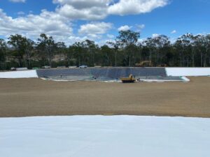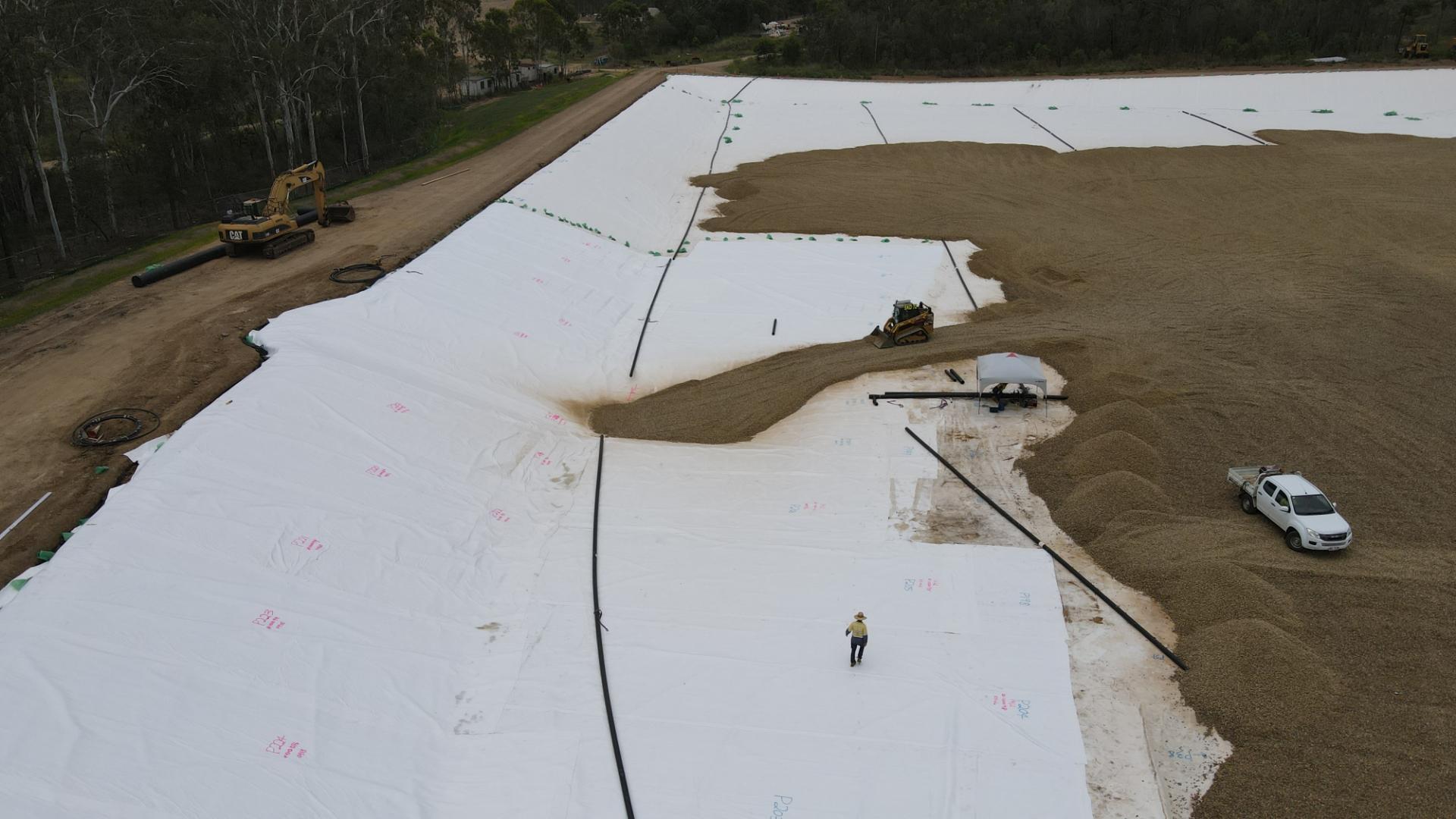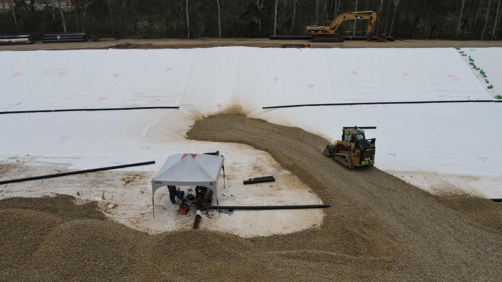 2. A GCL (Geosynthetic Clay Liner). This is a liner containing bentonite clay. Bentonite has a very low permeability. The GCL is placed under a HDPE liner. Should the HDPE liner puncture locally the bentonite layer is a secondary line of defence. The bentonite effectively seals the puncture.